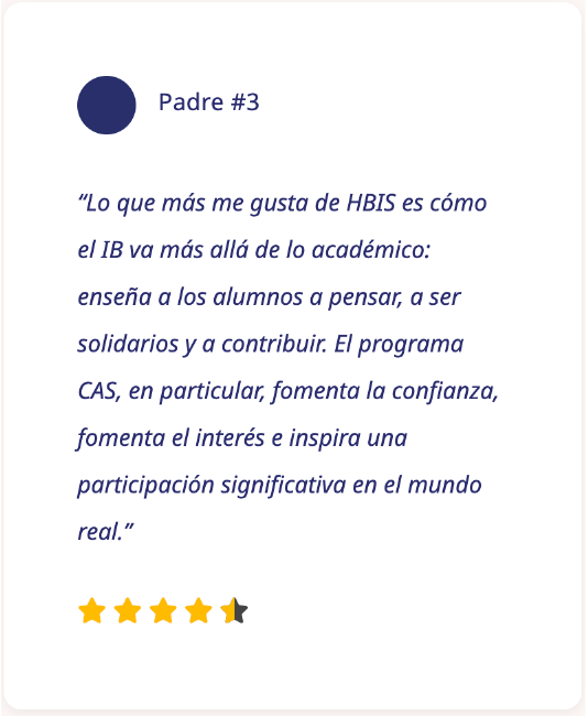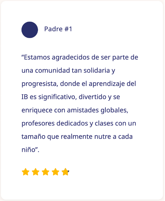 Nuestra educación del IB de clase mundial inspira a los estudiantes a alcanzar su potencial único, preparándolos para un mundo cambiante y empoderándolos para convertirse en futuros líderes que contribuyan a una sociedad mejor, más respetuosa y con mentalidad global.
